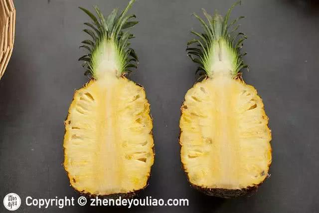 金钻凤梨拥有修长的身材。几乎是“切开果皮全是肉”,没有菠萝那样较深的果眼,只需要简单去皮就能吃,像吃西瓜一样毫不费力。